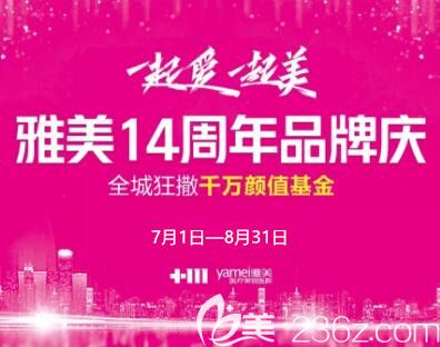 長沙雅美14周年品牌慶優(yōu)惠活動火爆來襲,雙眼皮999元,假體隆鼻1200元,還有酷暑繽紛卡限時限量發(fā)售!