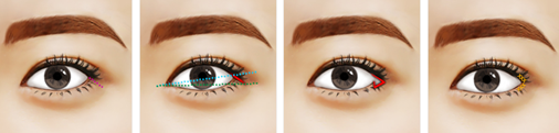 4. 在眼睛內(nèi)側(cè)進(jìn)行縫合,因此在看不到疤痕的同時(shí)完成自然又美麗的大眼睛。