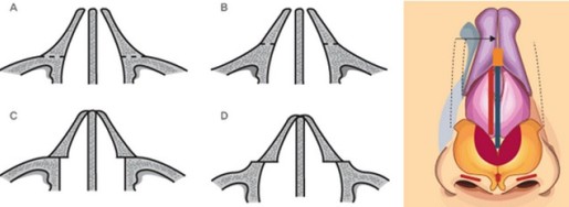 將鼻骨載斷之后,通過內(nèi)側(cè)將其靠攏,從而調(diào)節(jié)鼻子的寬度。